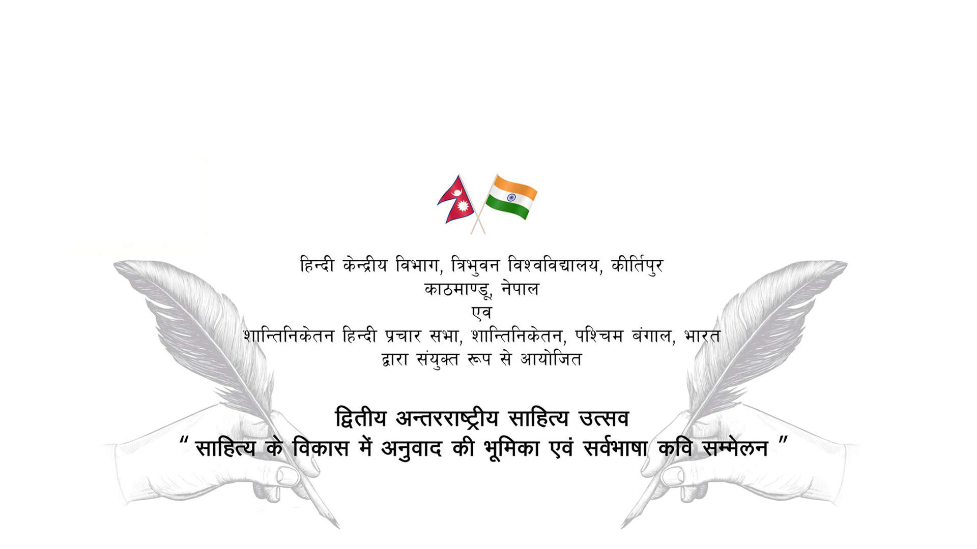 दिनांक २३ एवं २४ नवंबर,२०१८ दो दिवसीय द्वितीय अंतर्राष्ट्रिय साहित्य महोत्सव हिन्दी केन्द्रीय विभाग, त्रि.वि.काठमांडू नेपाल एवं शान्तिनिकेतन हिन्दी प्रचार सभा, शान्तिनिकेतन,पश्चिम बंगाल, भारत की संयुक्त आयोजना में साहित्य के विकास में अनुवाद की भूमिका एवं सर्वभाषा कवि सम्मेलन हार्दिक हॉटल, काठमांडू, नेपाल में अत्यंत गरिमा के साथ संपन्न हो गया । इस सम्मेलन में नेपाल एवं भारत से कुल मिलाकर १५० विद्वान एवं विदुषियों की उपस्थिति रही । प्रथम दिन का उद्घाटन सत्र अतिथियों की उपस्थिति के पश्चात् विनोद कुमार विश्वकर्मा, शिक्षक हिन्दी केन्द्रीय विभाग ने अत्यंत कुशलता के साथ संचालन किया ।